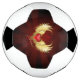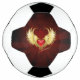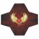 Bright red heart of an angel with golden wings shining in the dark radiant red background decorated with a pattern.