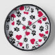 Add a touch of love and pet charm to your space with this round clock featuring a playful design of red hearts and black paw prints. This whimsical timepiece not only tells time but also serves as a delightful decorative accent. Crafted to bring joy to pet enthusiasts, it's a heartwarming addition to any room, combining adorable aesthetics with functionality.