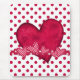 Lovely Valentine's Day design with red hearts and polka dots on white background. Fully customizable.