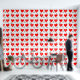 Red hearts pattern with couples Names written in white script. Love and Happiness typography in black against white background. Original Artwork Design by TamiraZDesigns.