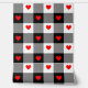 Red Hearts Cute Fun Black White Chequered Nursery Wallpaper