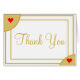 Gold colour Thank You elegant script against white background. Geometric double gold colour frame with small red hearts on faux flap scalloped corners. Personalise backside with Monogrammed Bride and Groom Initials. Type in a special wedding thank you message for each card and add them separately to the shopping cart. Or, delete text to leave blank inside to hand-write your own photo special thank you for a personal touch. Original Design by TamiraZDesigns.