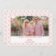 This horizontal landscape red hearts valentine's day photo card is the perfect horizontal Valentine card to send out showcasing a photo. A whimsical design with a patterned background covered in a red hearts and a pale pink background frames a valentine photo in a landscape orientation, with an editable Happy Valentine's Day message in red serif text.