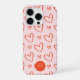 Red hearts in pink background with name initial iPhone case