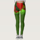 Red Hearts Lime Green Modern Abstract Fractal Art Leggings