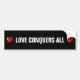 Red Hearts & Love Conquers All Text on Black Bumper Sticker