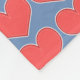 Red craft style hearts with stitch pattern on blue background.