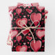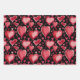 Red Hearts Pattern Drawing Valentine`s Day Wrapping Paper Sheets. Hand drawn heart on a black, pink and beige background. For Valentine`s day or to show your love.