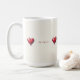This unique aesthetic is beautifully showcased on our coffee mugs. Each mug is adorned with the interconnected red hearts, symbolising the unbreakable bonds of affection, accompanied by delightful script quotes that add a personal and endearing touch. The striking red hearts stand out against the backdrop of the mug, their detailed texture adding depth and artistry to your coffee experience.