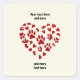 Square stickers with red heart shaped of paws and little hearts and custom text (or delete): Add a splash of love with these stickers. Customize the top and bottom text lines to make it yours. Cute for pet businesses: use as package seals for orders (shipping boxes, tissue paper, gift bags), thank-you stickers for customers (“Thank you for supporting my small pet business”), freebie stickers included in every order, stickers for adoption events (“I just adopted a friend!”), pet shop giveaways at fairs, markets, or pop-ups. Also cute for pet owners: use as name labels for food containers, treat containers, litter boxes, leashes or as reward stickers for puppy training charts. Here's some text ideas: “Made With Love for Your Pet”, “Handmade for Dog Lovers”, “Pawsitively Yours”, “Thank You From Our Pack”, “Fur-ever Grateful”, etc. Designed by Best Baby Gifts - given with love.