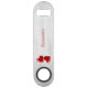 Pop open bottle tops with this unique Red Hearts Personalised Bottle Opener. Bottle Opener design features a a pair of hearts, a soft white leafy vine against a light grey grunge background with an area to personalise with your name. Additional gift items available with this design as well as a variety of colours.