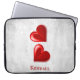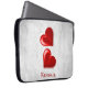 Protect your laptop with a Red Hearts Personalized Laptop Sleeve. Laptop sleeve design features a pair of hearts resting on a white leafy vine against a gray grunge background with a place to personalize with your name. Additional items available with this design as well. Please contact me directly for assistance with personalization.