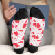 Red hearts, text, "love you", red and white, check socks