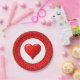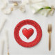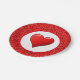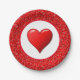 This festive holiday plate features a red heart pattern background with a single red heart in the centre. A perfect paper plate for a Valentine's Day party or dinner.