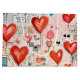 Gift bag with a fun mixed media style pattern. Big red hearts and various random shapes scattered around making a delightfully cute pattern.