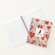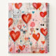 Spiral notebook with a fun mixed media style pattern. Big red hearts and various random shapes scattered around making a delightfully cute pattern.