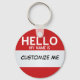 This customisable product features a red "Hello My Name Is ..." name tag sticker in English.