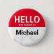 Red Hello My Name Is custom round pin button. This has a red background with a modern white marble pattern for your personalised name. You can change the red background colour for your own style. Use this easy template to customise the text and name. Great for reunions, business meetings, church groups, study groups, training classes, gatherings, parties, employees, etc...