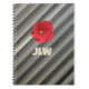Bold stylishn notebook with red Hibiscus flower and modern monochromatic stripes in smokey shades of grey personalised with bold Initials is a unique and sophisticated style for your Journalling and note keeping.