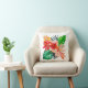 Red Hibiscus flower and Monstera leaves Cushion