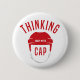 red hockey helmet thinking cap flair button. wear this hockey button proudly