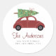 Red Holiday Car with Christmas Tree Address Classic Round Sticker