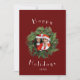 Custom Christmas holiday cards can be personalised with photo and message. Red holiday card customised with photo template.