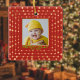A red Merry and Jolly double-sided Christmas ornament that has a template for you to insert your own photo on each side, two photos total. Under each photo you can personalise the text with names, announcement or whatever you like. Get creative and make it a keepsake to remember for yourself or as a gift.