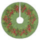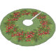Red Holly Berries Green Pine Tree Needles Motif Brushed Polyester Tree Skirt