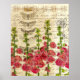 Red Hollyhocks Apple Blossom Butterfly Collage Poster