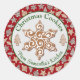 Homemade Christmas Cookies classic round sticker with red gingerbread cookies pattern background and snowflake cookie in the centre. Perfect sticker for your homemade baked goods this holiday season. Simply add your name to the label and also what type of cookies at the top.