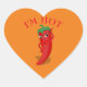 A red and hot pepper cartoon character. Original design. Version with customisable text and background colour. This sticker can be used in sauce bottles and other hot foods. For fun and as a warning sign.