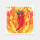 A red and hot pepper cartoon character. Original design with fire flames in the background.