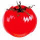 This original photo sculpture Magnet by ZoeSPEAK is a bright red tomato, looking hot, "electrified" by various filters. The green stem and leaves looked shocked, with their zigzag kines, and there's a white zigzag highlight on the shiny tomato red skin. This vine ripened tomato is red hot.