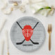 Red Ice Hockey Helmet and Sticks Typography Paper Plate
