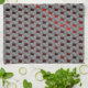 Red curves image under rectangles whose colors go from grey to the lightest or darkest, giving a percepttion of relief and depth depending on the position to look or personal perception. The rectangular shapes are as if they were embedded pieces. The rectangles of the print give a certain appearance that they are gray plaques glued.
