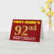 Red, Imitation Gold "92nd BIRTHDAY" Birthday Card