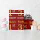 This wrapping paper design features a message like "First-Name’s 31st BIRTHDAY!", with the "31st" having a faux/imitation gold-like colour appearance. The name can be personalised, and the background is coloured red. It could perhaps be used when wrapping gifts being given for somebody’s thirty first birthday. [~Z0000178]