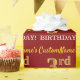 This wrapping paper design features a message like "CustomName’s 3rd BIRTHDAY!", with the "3rd" having a faux/imitation gold-like colour appearance. The name can be customised, and the background is coloured red. It could perhaps be used when wrapping gifts being given for somebody’s third birthday. [~Z0000178]