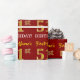 This wrapping paper design features a message like "First-Name’s 51st BIRTHDAY!", with the "51st" having a faux/imitation gold-like colour appearance. The name can be customised, and the background is coloured red. It could perhaps be used when wrapping gifts being given for somebody’s fifty first birthday. [~Z0000178]