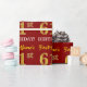 This wrapping paper design features a message like "First-Name’s 61st BIRTHDAY!", with the "61st" having a faux/imitation gold-like colour appearance. The name can be customised, and the background is coloured red. It could perhaps be used when wrapping gifts being given for somebody’s sixty first birthday. [~Z0000178]