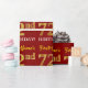 This wrapping paper design features a message like "First-Name’s 72nd BIRTHDAY!", with the "72nd" having a faux/imitation gold-like colour appearance. The name can be personalised, and the background is coloured red. It could perhaps be used when wrapping gifts being given for somebody’s seventy second birthday. [~Z0000178]