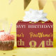 This wrapping paper design features a message like "FirstName’s 84th BIRTHDAY!", with the "84th" having a faux/imitation gold-like colour appearance. The name can be customised, and the background is coloured red. It could perhaps be used when wrapping gifts being given for somebody’s eighty fourth birthday. [~Z0000178]