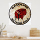 Red Indian Gasoline vintage tin sign reproduction. Rusted version. Hit the Road Designs