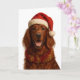 One very happy looking Irish Setter / Red Setter sporting a Santa hat, adorned in tinsel and looking very chuffed that it's Christmas!