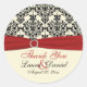 Red, Ivory, and Black Damask 3" Thank You Sticker