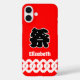 This personalised phone case is designed with a classic red happi coat pattern.  The Japanese kanji character "matsuri," which means "festival," appears in black with a white outline, and an interlocking Yoshiwara chain pattern appears in white along the bottom.  You can have your own name printed on the case!  Just type it into the section above and watch the case magically update!