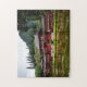 Beautiful and serene red Japanese temple scene jigsaw puzzle.