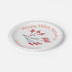 Customisable Red Jet Planes party plate. Nine red aerobatic planes fly through the air in celebration with red, white and blue trails!
