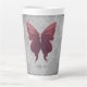 Enjoy your morning coffee on the go with a Jewelled Butterfly Personalised Latte Mug. Travel mug design features a vibrant jewelled butterfly against an elegant vintage grey damask pattern. Additional gift items available with this design as well as a variety of colours.
